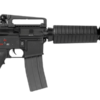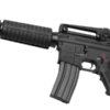 Color negro, Cuerpo, metálico, guardamanos polímero,y culata retráctil tipo de 6 posiciones, mira superior tipo manija transportadora removible, mira frontal fija, rieles superiores 20mm para colocar miras ópticas, guardamanos clásico tipo barril, selector con función seguro, 1 tiro y ráfaga, cargador metálico de 450tiros. sujetadores de correa 2 puntos